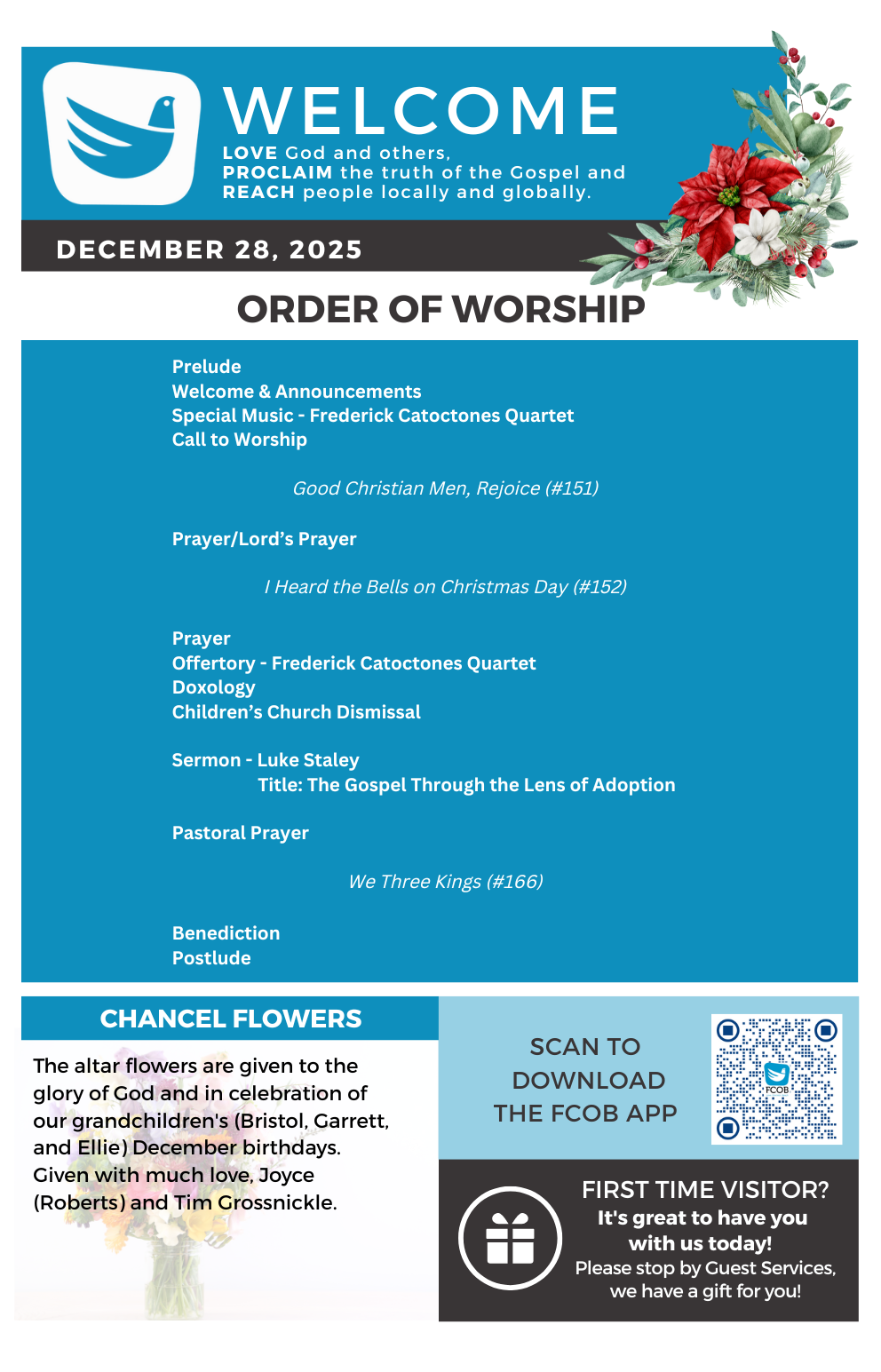 Your growth in Christ is important to us. We want to grow with you, and we have many different options to grow. You can join a fcobLifeGroup, and every Sunday Christian Education is available for adults, youth, and children. There is an opportunity to grow in Christ for everyone.